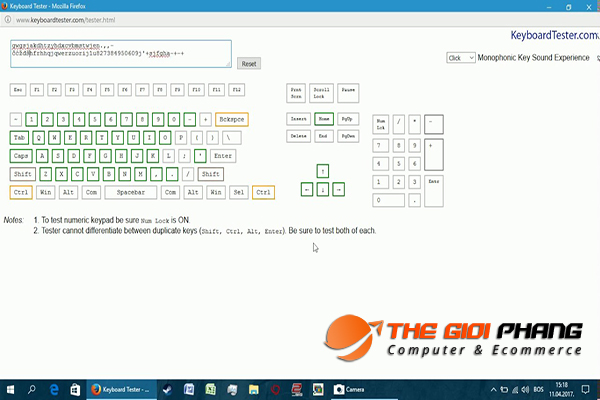 Tại đây bạn hãy nhập lần lượt các phím có trên bàn phím vào. Phím nào mà vẫn hoạt động được thì nó sẽ sáng lên. Ngược lại, phím nào bị liệt thì nó sẽ không sáng.