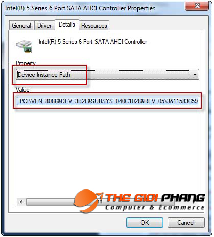 Trong khung Property tìm vào chọn vào Device Instance Path (Windows 7 và Vista) hoặc là Device Instance ID (cho Windows XP)