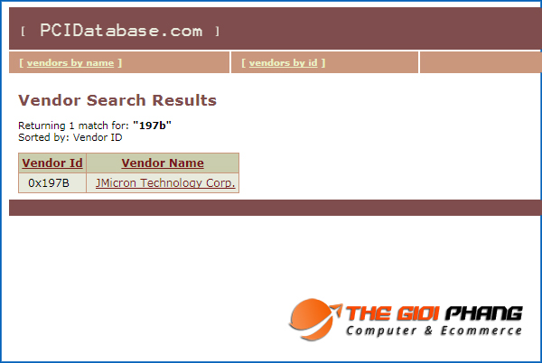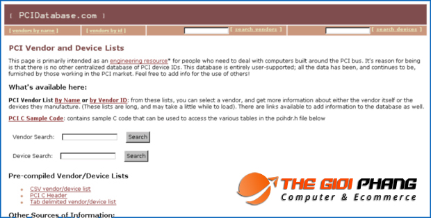 Truy cập website http://PCIdatabase.com 1 website lưu trữ các mã VEN và DEV để ta có thể truy cứu