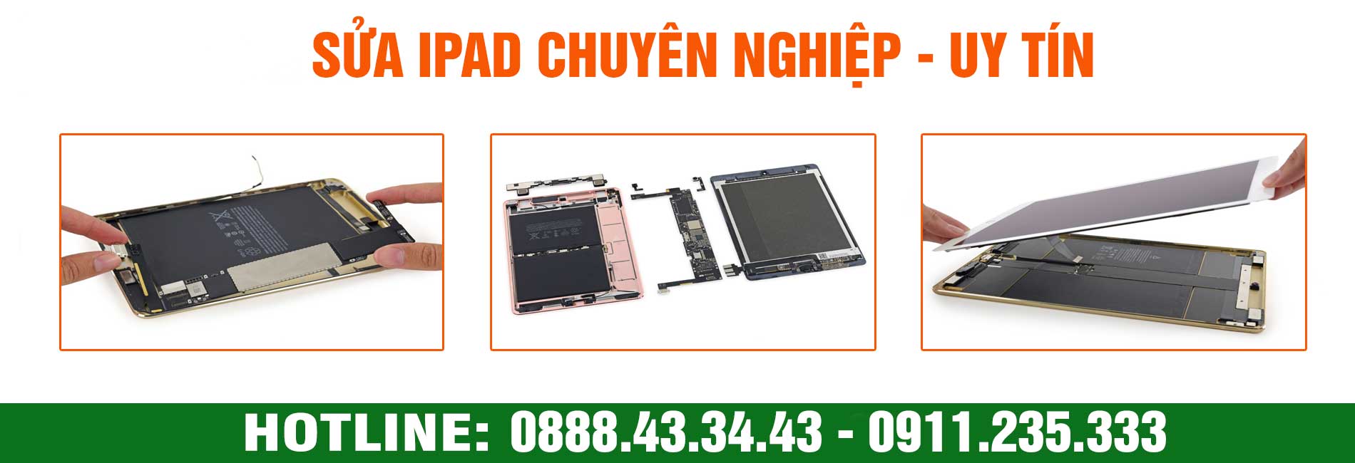 Nếu bạn đang cần dịch vụ sửa chữa iPad, hãy liên hệ với chúng tôi qua Hotline: 0888.43.34.43 để được nhân viên tư vấn những thắc mắc của bạn.