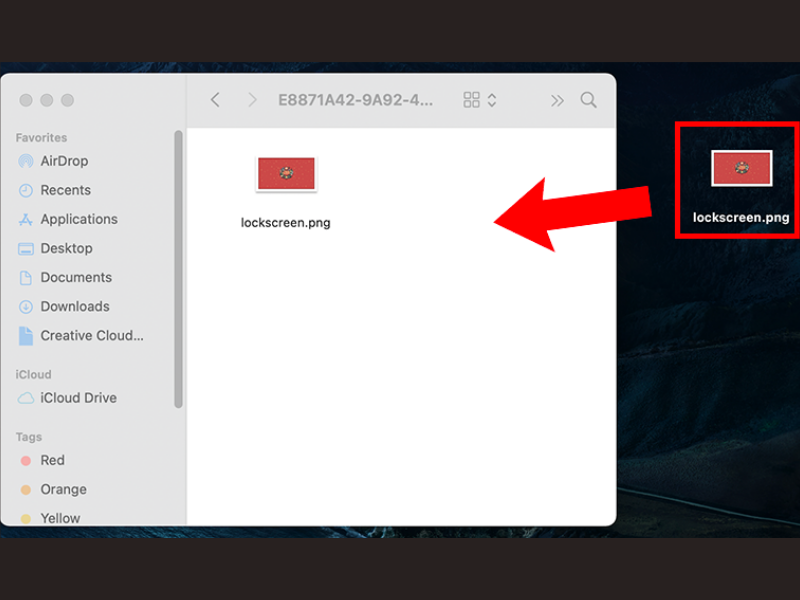 - Bước 5: Nhấn và kéo thả ảnh vừa mới tải về vào folder như hình. Bạn cần nhập mật khẩu nếu Macbook yêu cầu nhập để xác minh.