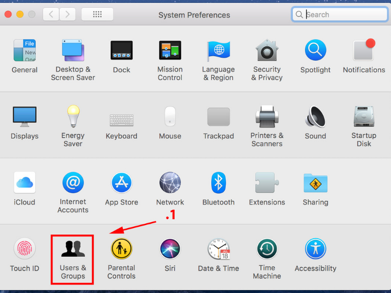 - Bước 1: Trên thiết bị Mac, nhấn vào logo Apple. Tùy chọn System Preferences và chọn người dùng & nhóm Users & Groups. Nếu ổ khóa góc trái Macbook đang bị khóa, nhấn vào ổ khóa đó để thiết lập mở khóa.