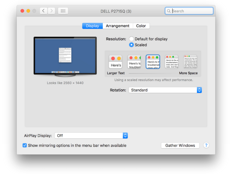 Nếu muốn đặt độ phân giải cho màn hình Macbook theo tùy chỉnh, chọn biểu tượng Apple > System Preferences > Display và đặt theo tỷ lệ bạn muốn.