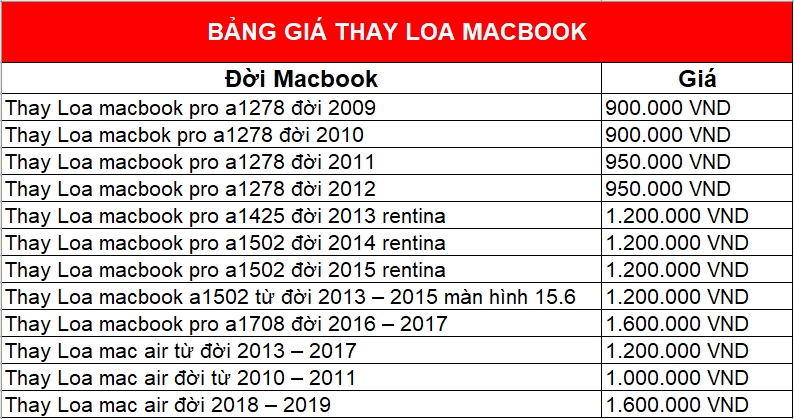 bảng giá tham khảo về thay loa macbook tại đà nẵng ( giá luôn cập nhật, vui lòng call )