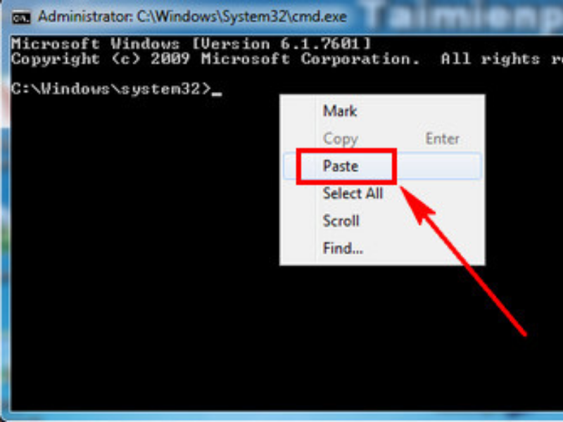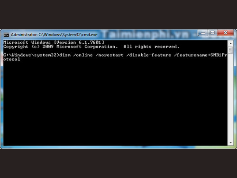Bước2: Copy lệnh: Dism /Online /Norestart /Disable-Feature /Featurename:SMB1Protocol vào Command Prompt. Sau đó nhấn chuột phải chọn Paste.