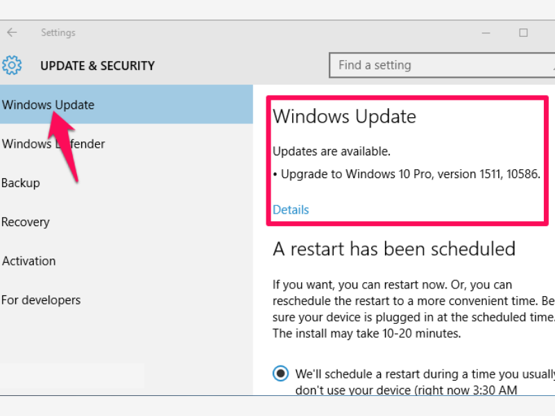 Sau đó, vào Control Panel > nhấn Windows Update. Đợi cập nhật mới nhất phiên bản Win 10.
